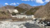 午前中まで雨が降っていたので、少し増水していましたが、水が澄んでいてとても綺麗でした。少し川を眺めたら温泉へ移動します。数馬の湯は目の前にあります。